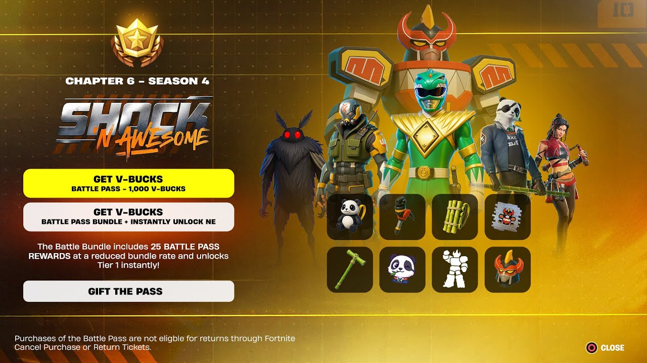 🍏Fortnite: Chapter 6 – Season 4 | Shock ‘N Awesome Battle Pass (Full Showcase)